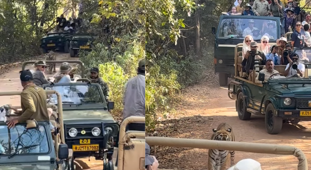 A video from Ranthambore National Park shows a tiger surrounded by numerous safari vehicles. The incident has gone viral and drawn criticism online. Many users expressed concern over the animal’s distress and the lack of space. This event highlights the need for improved safari management to ensure wildlife protection and safe viewing distances.