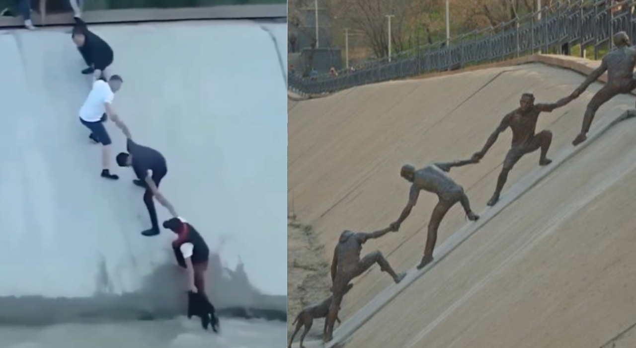 A heartwarming act of kindness in Almaty, Kazakhstan, where strangers formed a human chain to rescue a dog from a reservoir in 2016, has been immortalized in a bronze sculpture. Unveiled recently, the artwork celebrates solidarity and collective action, reigniting online discussions about humanity’s capacity for compassion and reminding us of the value in simple,